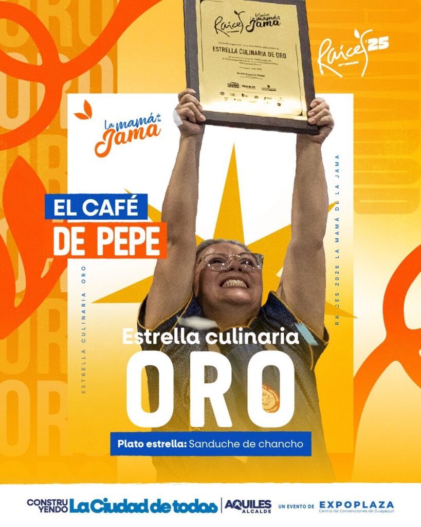 El Café de Pépe, con su Sánduche de Chancho fue elegido el ganador de esta edición, obteniendo la codiciada Estrella Culinaria de Oro. Este reconocimiento honra no solo la sazón y autenticidad del plato, sino también la historia de esfuerzo y dedicación detrás de cada emprendimiento que forma parte de Raíces.