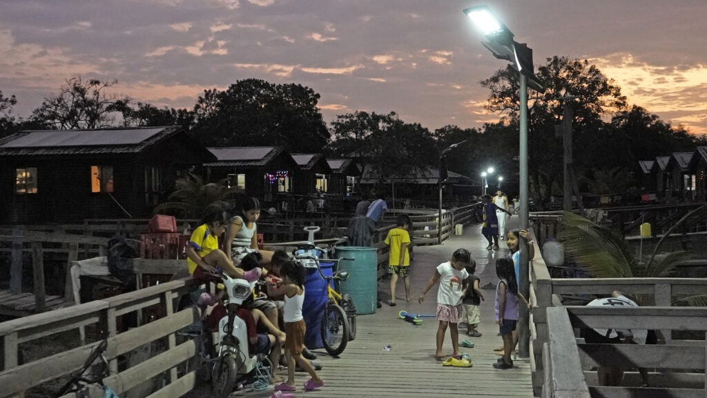 Con el encendido de las camineras a las 18:00, una luz suave empieza a delinear la biodiversidad que caracteriza a la Isla Santay: bosques secos, manglares y pastizales que guardan memoria e identidad. A esa hora, los jóvenes corren entre los pasillos con sus balones, los adornos navideños comienzan a parpadear y los pescadores, tras la faena diaria, pueden recostarse en sus sofás para ver televisión sin temor a quedarse a oscuras.
