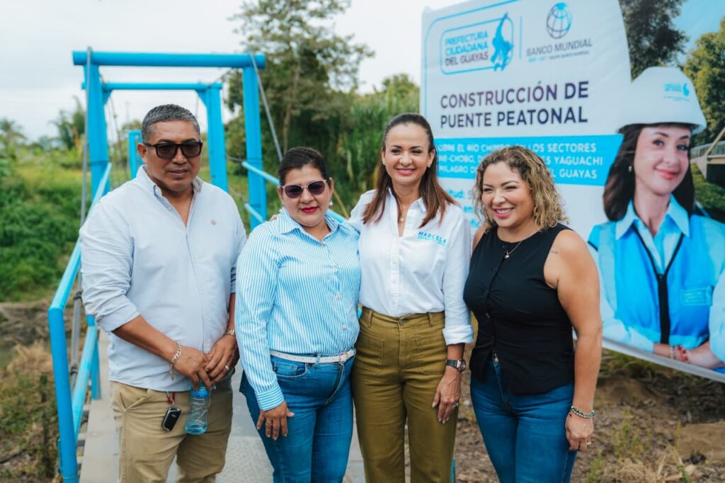 Esta mañana, la prefecta Marcela Aguiñaga se desplazó hasta la parroquia Cone, en Yaguachi, para dar inicio a la construcción del puente peatonal sobre el río Chimbo, una estructura que cumple con las especificaciones técnicas requeridas, asegurando su estabilidad y funcionalidad a largo plazo, y conecta esta zona con Chobo (Milagro), como parte del proyecto Vías Rurales Resilientes, financiado por el Banco Mundial.