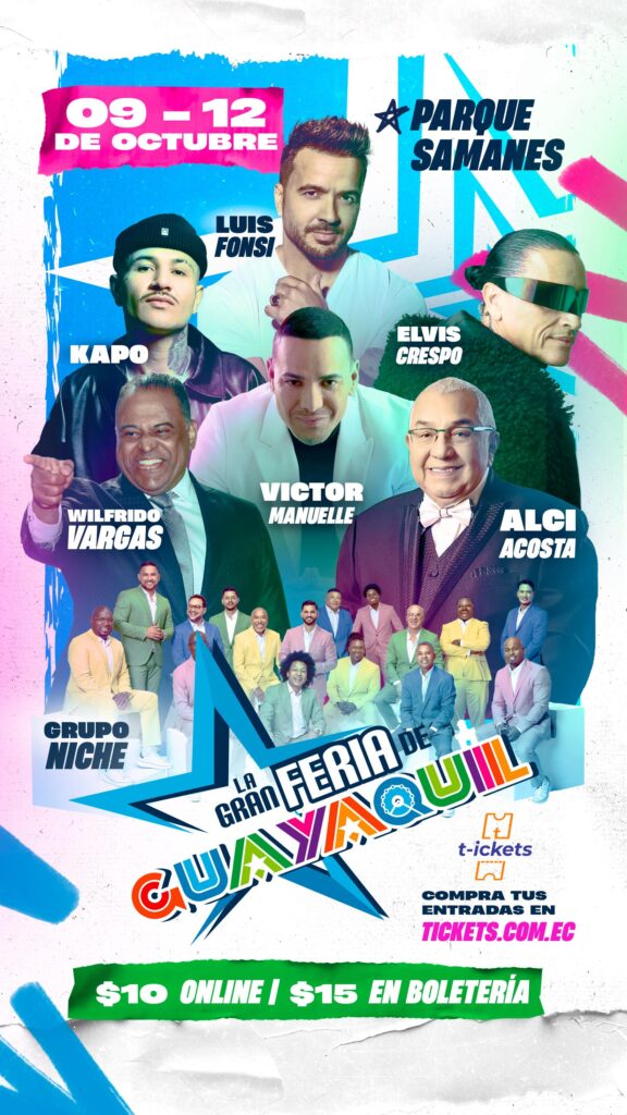 La Gran Feria de Guayaquil, La Mamá de las Ferias, el evento más grande e importante del Pacífico Sur, confirma su cartelera oficial de conciertos y anuncia que las entradas ya están disponibles en: tickets.com.ec y a través del WhatsApp oficial 0980008000.