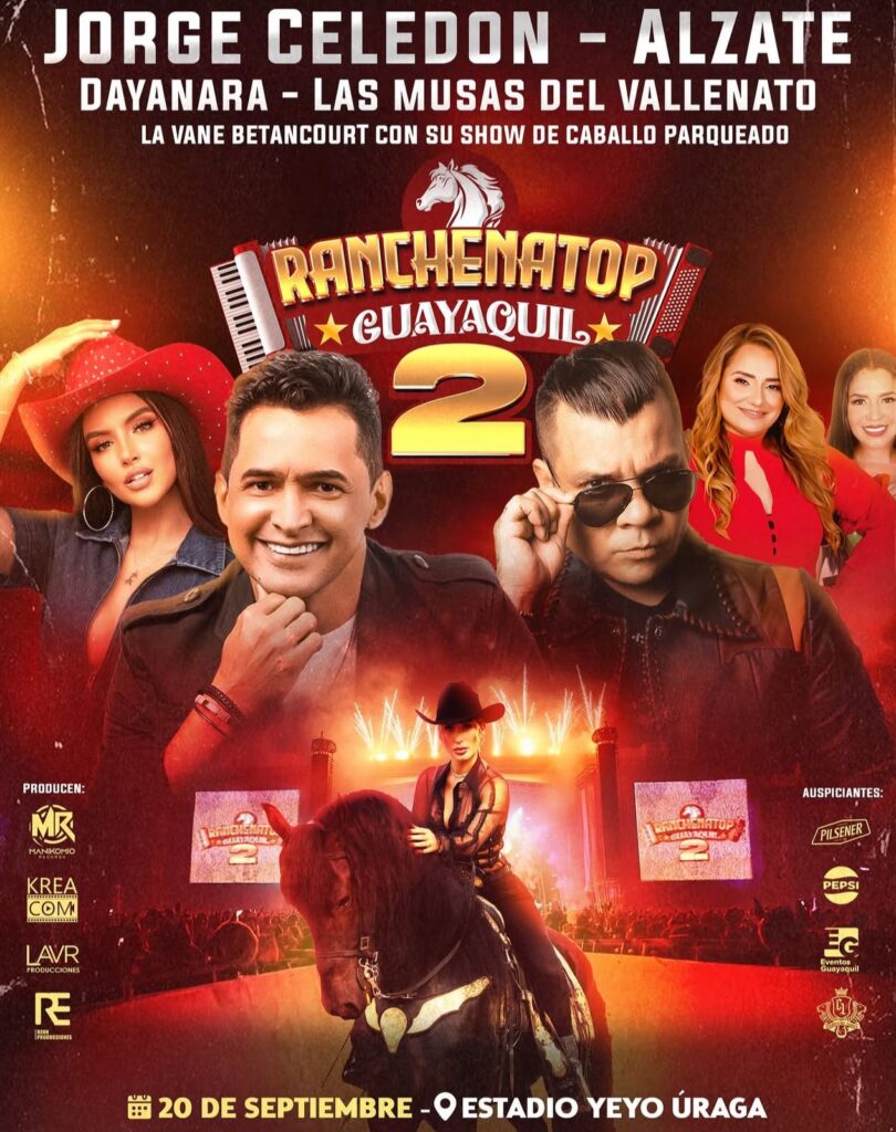 La espera terminó. Este 20 de septiembre, la ciudad de Guayaquil vivirá una noche inolvidable con la segunda edición del esperado concierto RANCHENATOP, que reunirá a grandes exponentes de la música ranchera y vallenata en un solo escenario.
